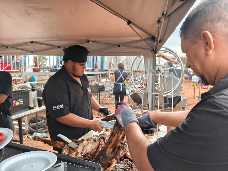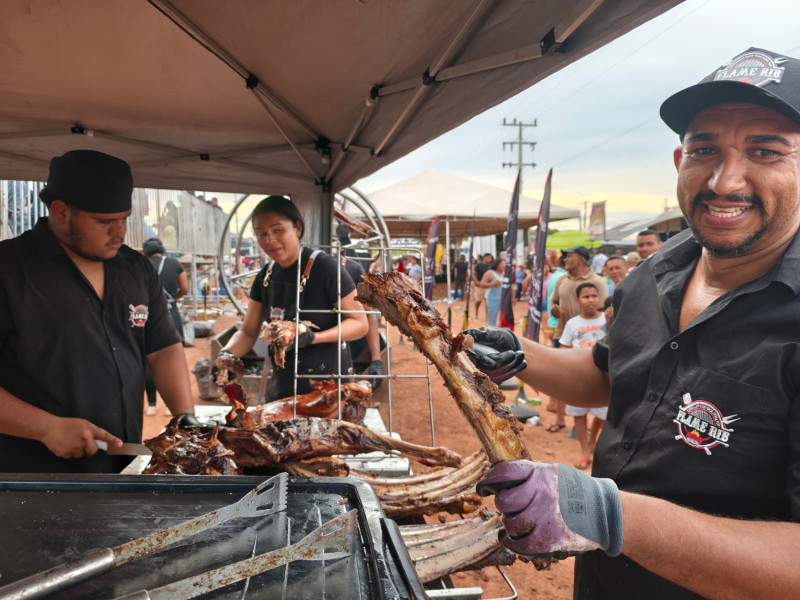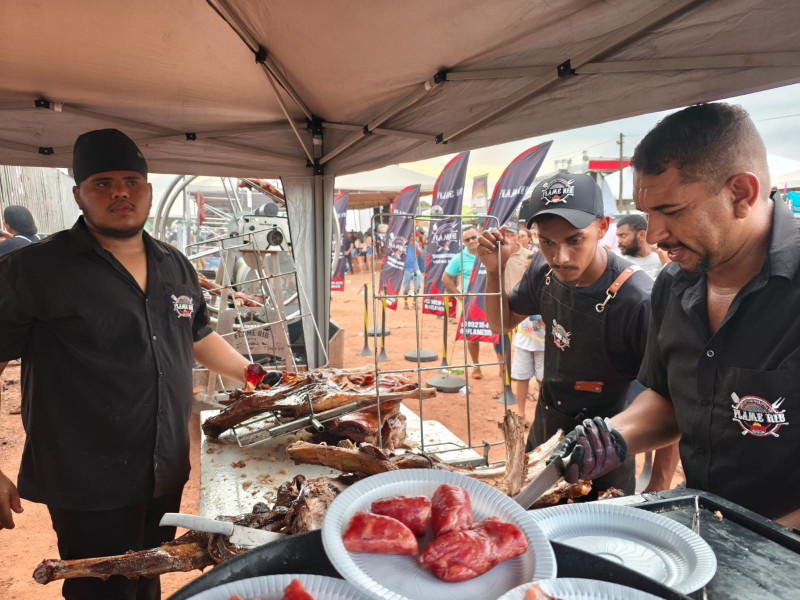 Prefeitura montou megaestrutura para servir churrasco gratuito à população, reunindo centenas de pessoas em um momento de confraternização nas comemorações do aniversário do município.