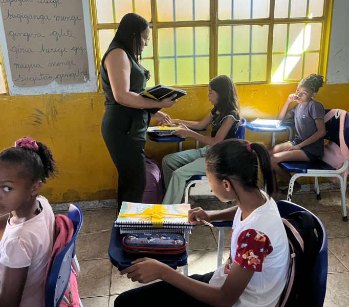 Com a finalidade de investir na melhoria do ensino-aprendizagem das crianças da Rede Municipal de Ensino, a Secretaria Municipal de Educação de Lagoa do Tocantins (Semed) realizou a entrega oficial das apostilas preparatórias do Sistema de Avaliação da Educação Básica (Saeb) aos alunos do 5º ano da Escola Municipal Delci Ribeiro Barros. A entrega ocorreu nesta terça-feira, 20, na unidade escolar.